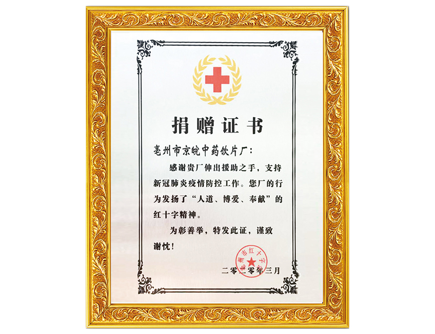 新冠肺炎捐助证书